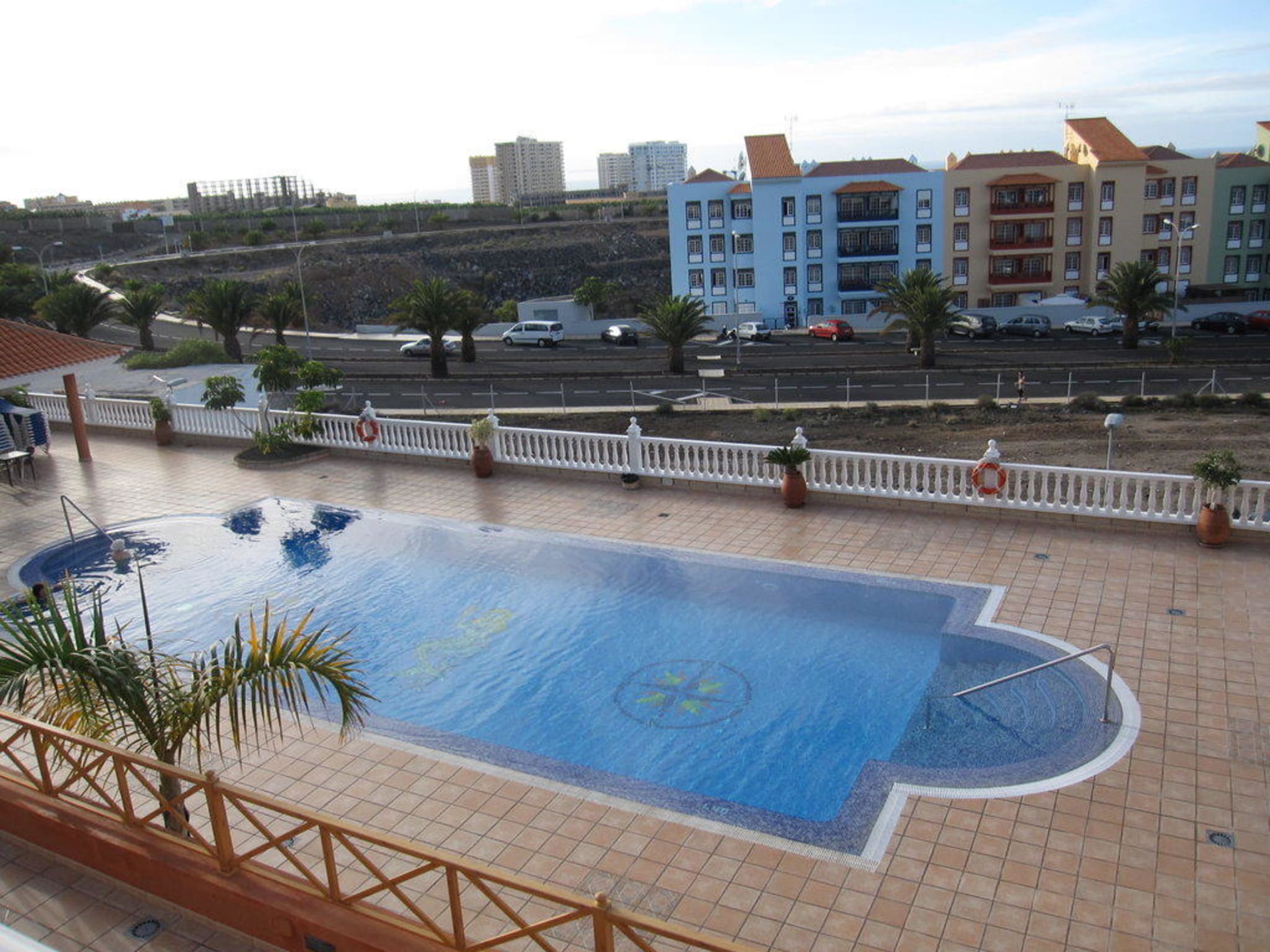 Blick vom Balkon auf den Pool