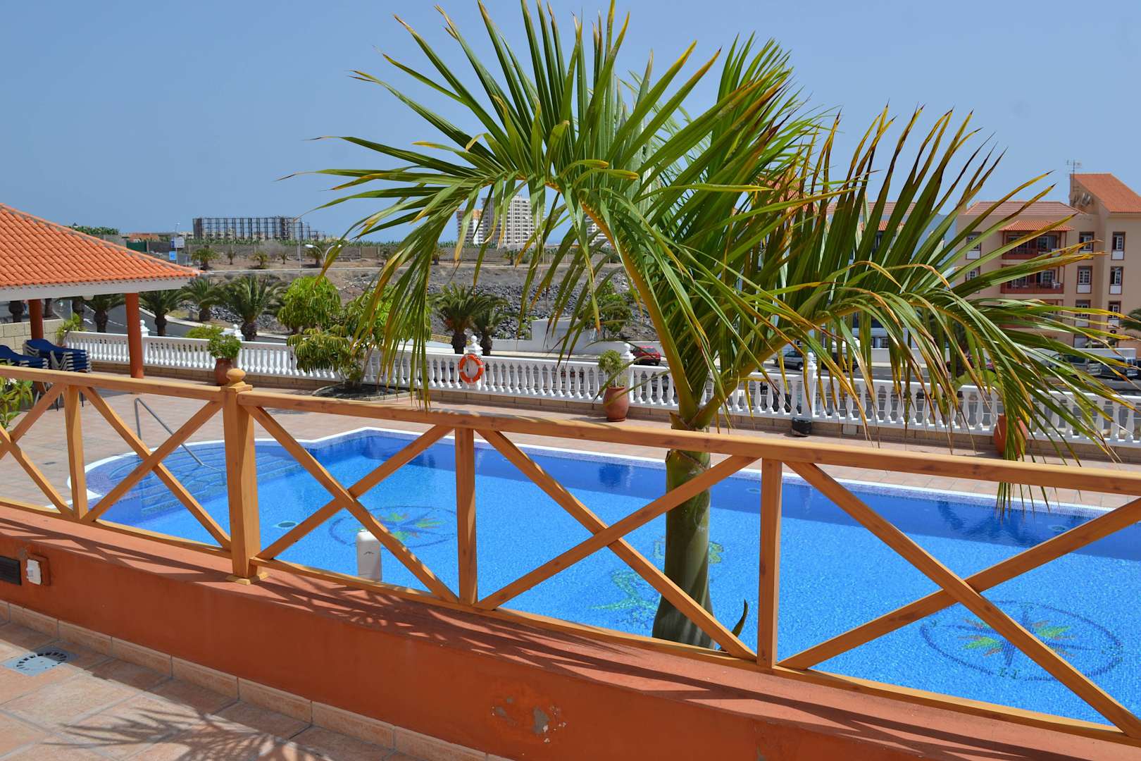 Seitlicher Blick vom Zimmer 6 von der Terrasse