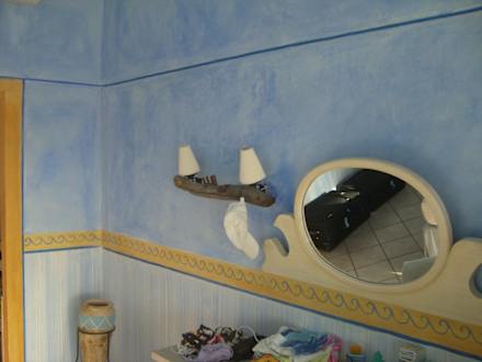 Hier sieht man, wie schön das Zimmer gestrichen ist. Die Lampe wird von einem Ast gehalten, was eins der vielen, kleinen, liebevollen Details ist