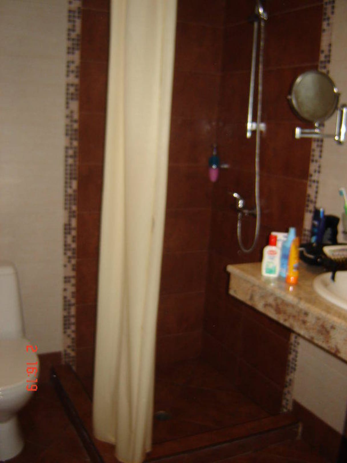 Bad und DuscheHier kann man die Dusche sehen.. rechts kommt das große Waschbecken mit viel Platz zum Sachen abstellen...