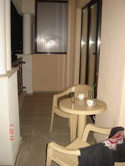 BalkonDer große Balkon mit einem Tisch, 2 Stühlen und hier nicht sichtbar einem kleinen Wäscheständer...