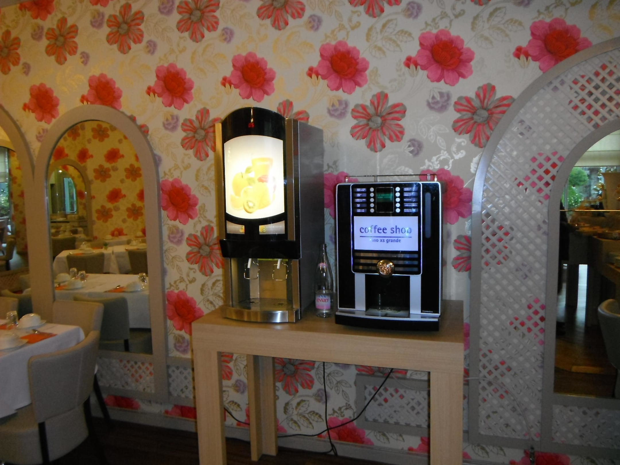 Kaffee und Fruchtsaftautomat im Frühstücksraum