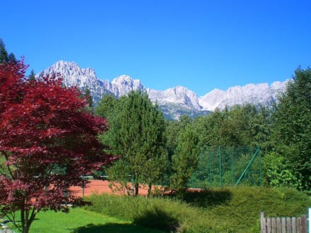 Blick vom Pool auf den Wilden Kaiser