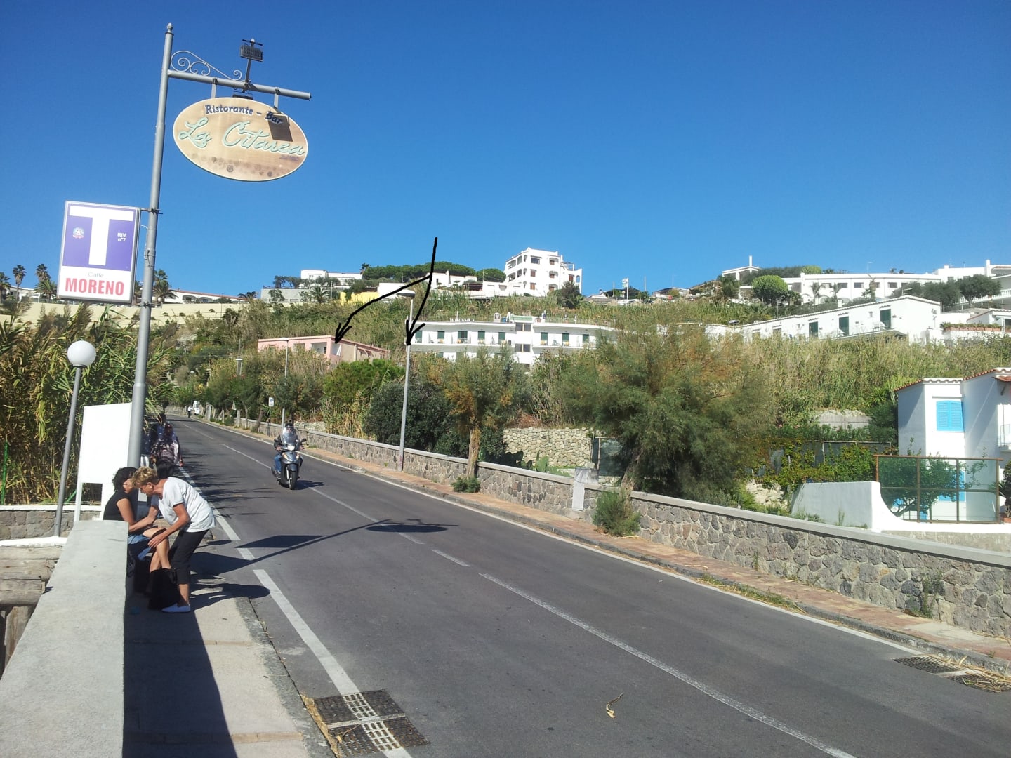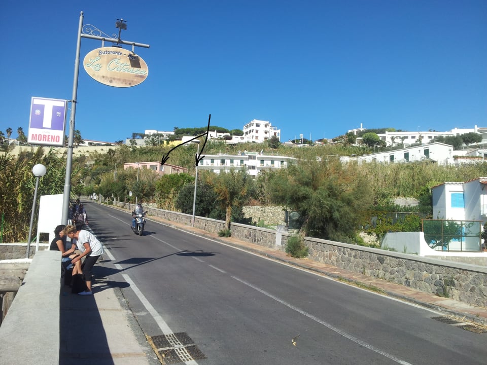 Hotel Citara (siehe Pfeil) von der Straße gesehen
