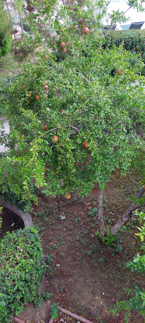GartenanlageWunderschöner saubere Gartenanlage, Granatapfel, Palmen, Pinien und bunte Blüten