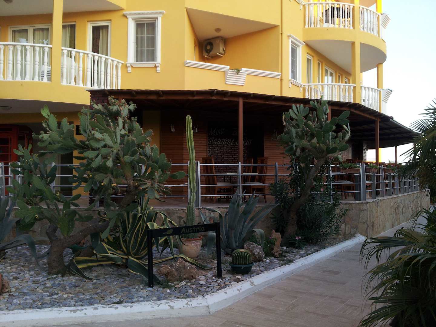 Blick auf die Terrasse des Fischrestaurants