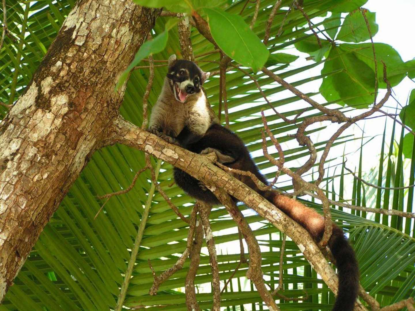 Nasenbär auf Palme