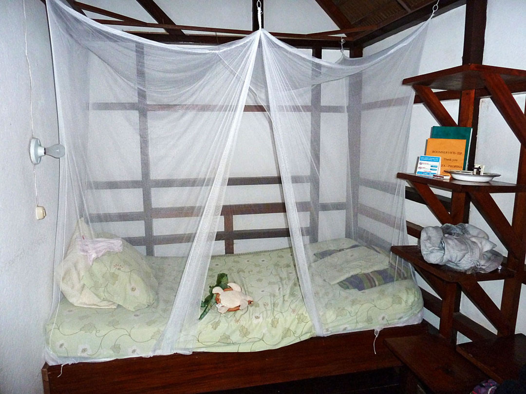Das Bett unseres Sohnes - mit Moskito-Netz! Super!!!!