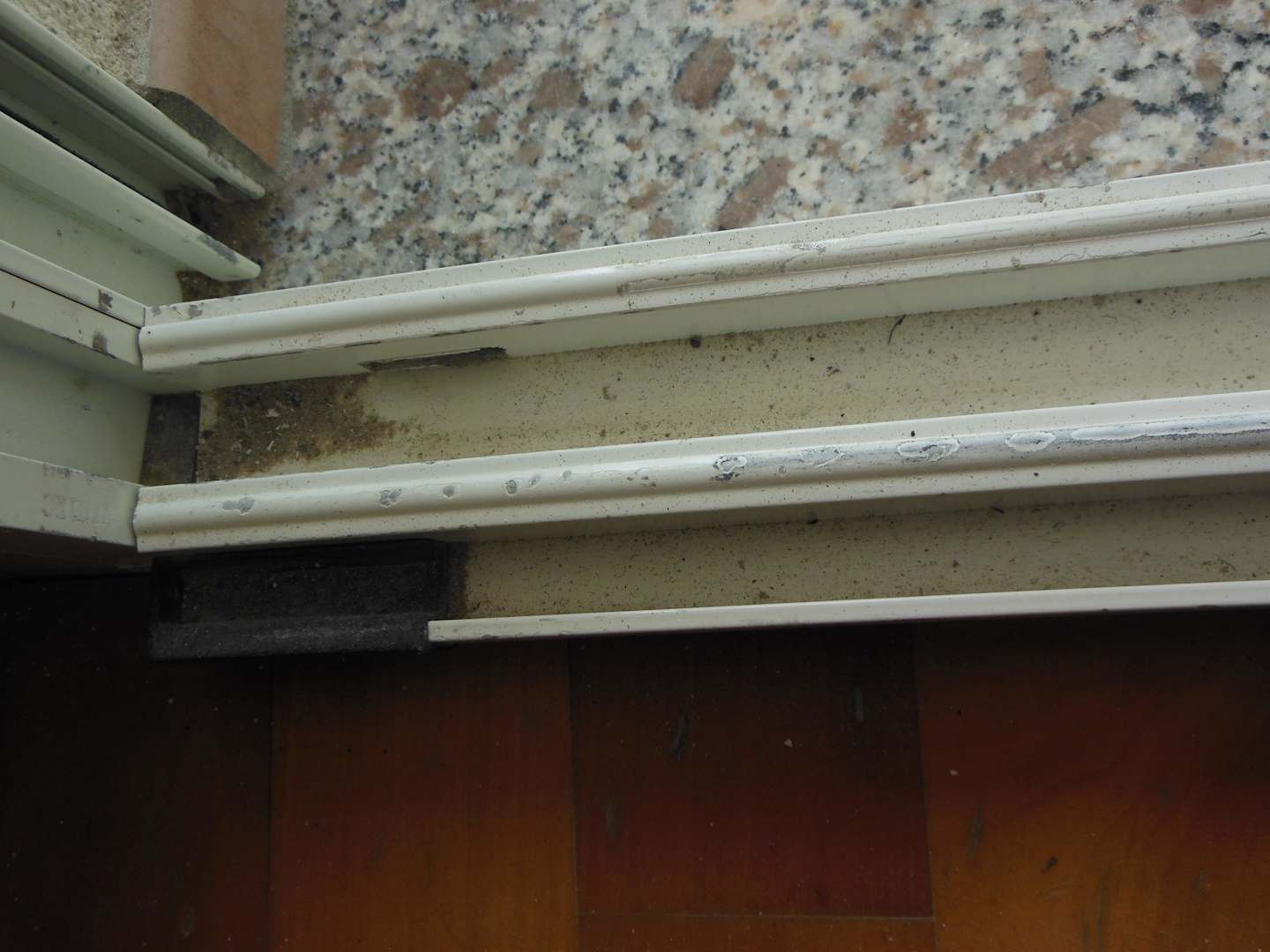 Bauschutt in der Schiene der Terrassentür