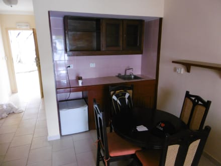 Wohnzimmer/Küche; alte abgewohnte Möbel,Küche komplett leer(keine Gläser,Besteck,etc.)
