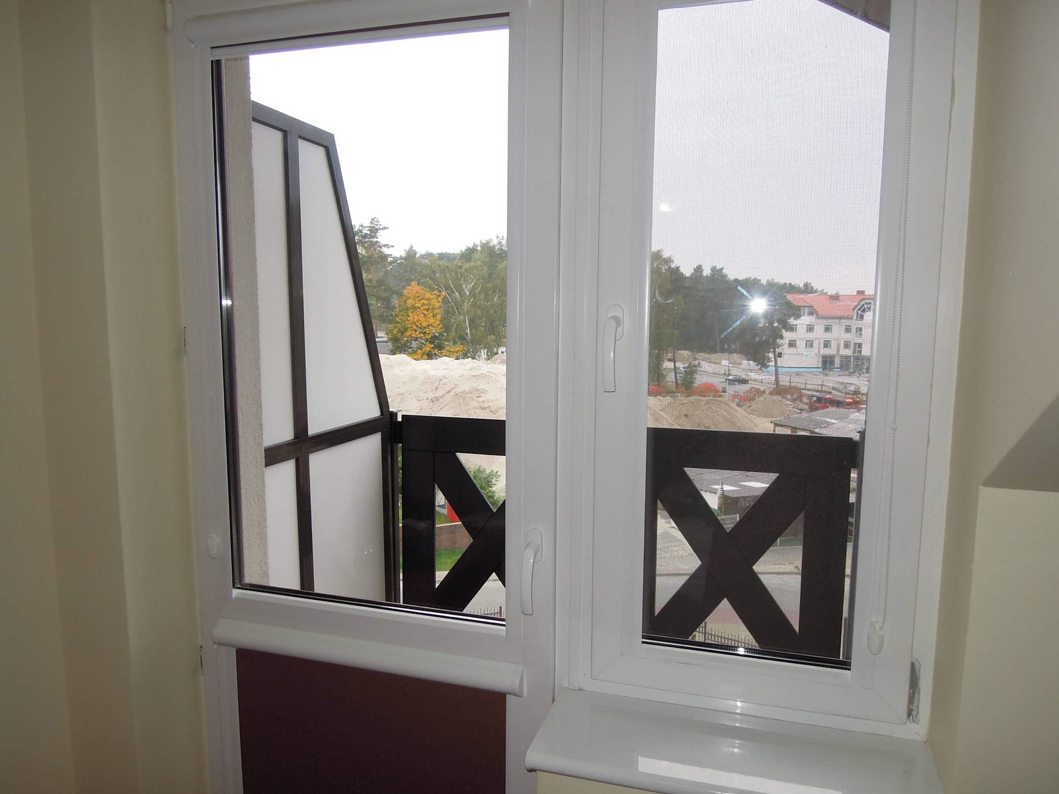 Mały balkon z widokiem na budowę
