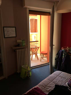 Sicht von Bett auf den kleinen Balkon