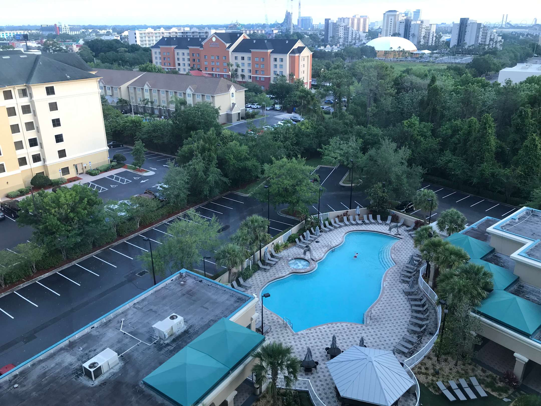 Blick auf den Pool aus dem 11. Stock