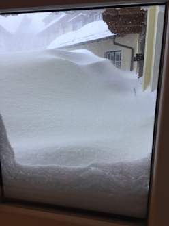 Blick aus den Schlafzimmerfenster nachdem es die Nacht durchBlick aus den Schlafzimmerfenster nachdem es die Nacht durchgeschneit hat...