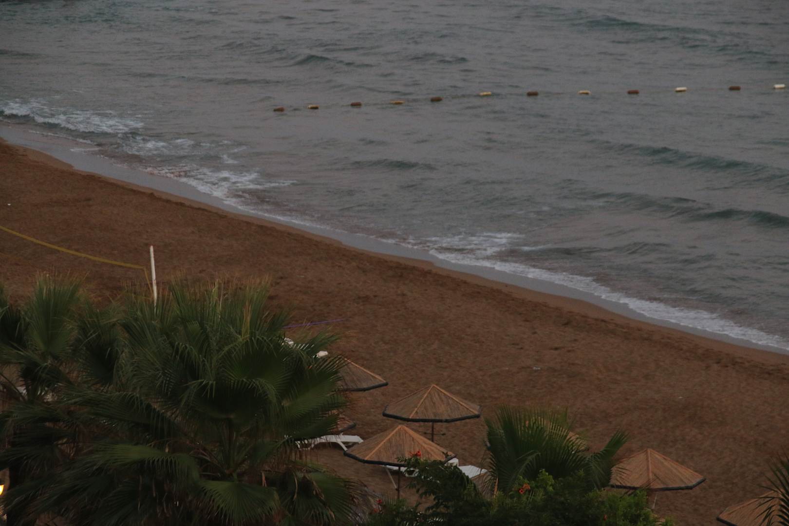 Kurz vor Anbruch der Dunkelheit. Im Meer gab es Abtrennungen für die Schwimmer.