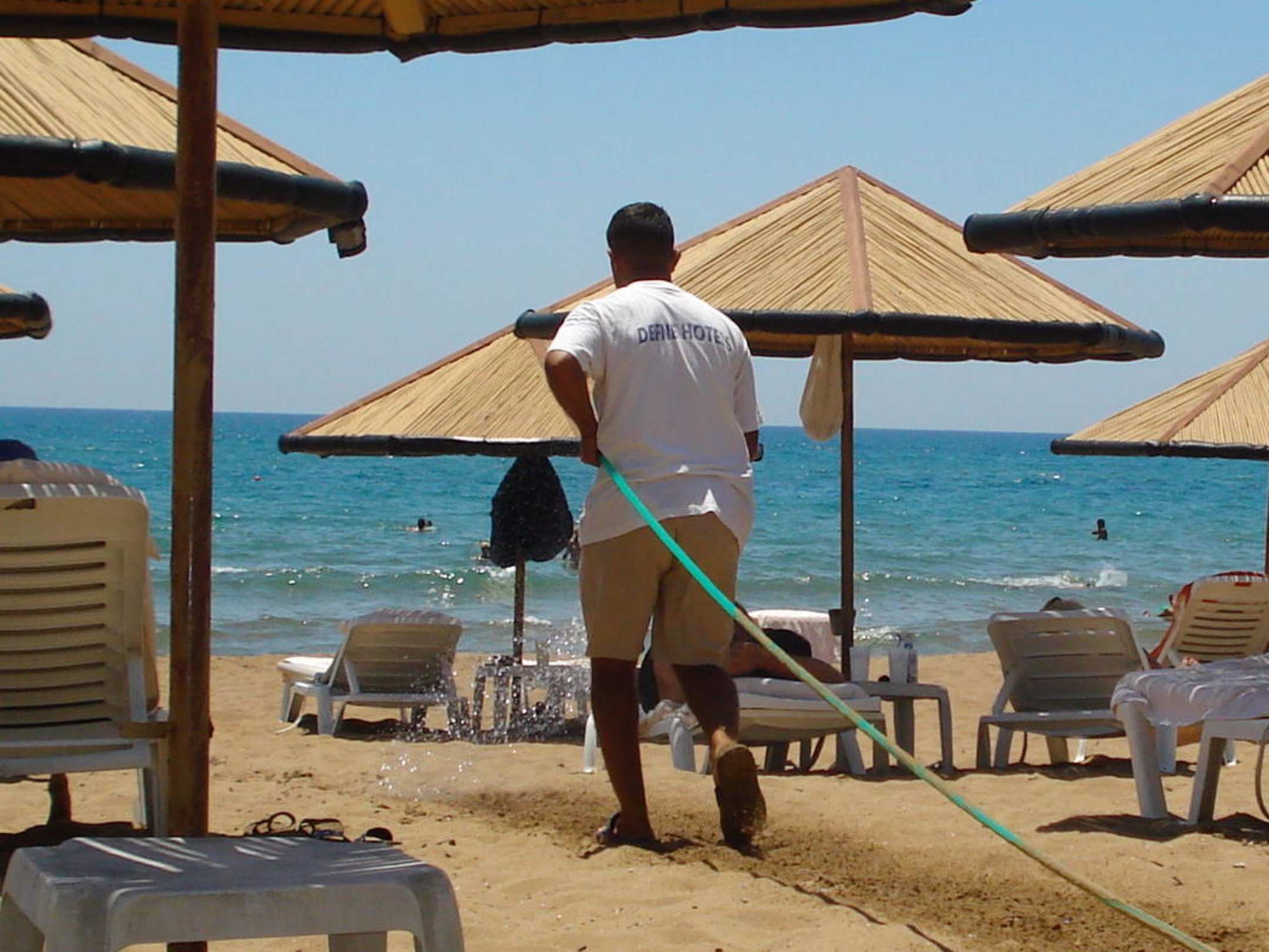 wird ständig bewässert, damit man unbeschwert zum Meer laufen kann