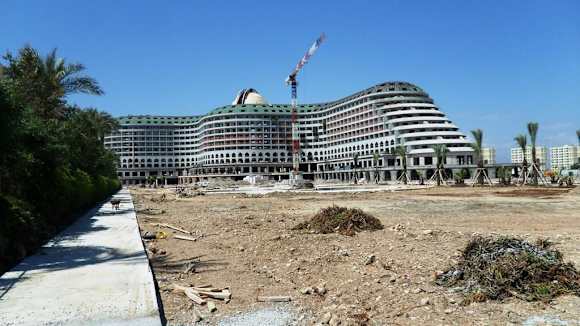 Blick auf das im Bau befindliche Hotel Delfin Imperial