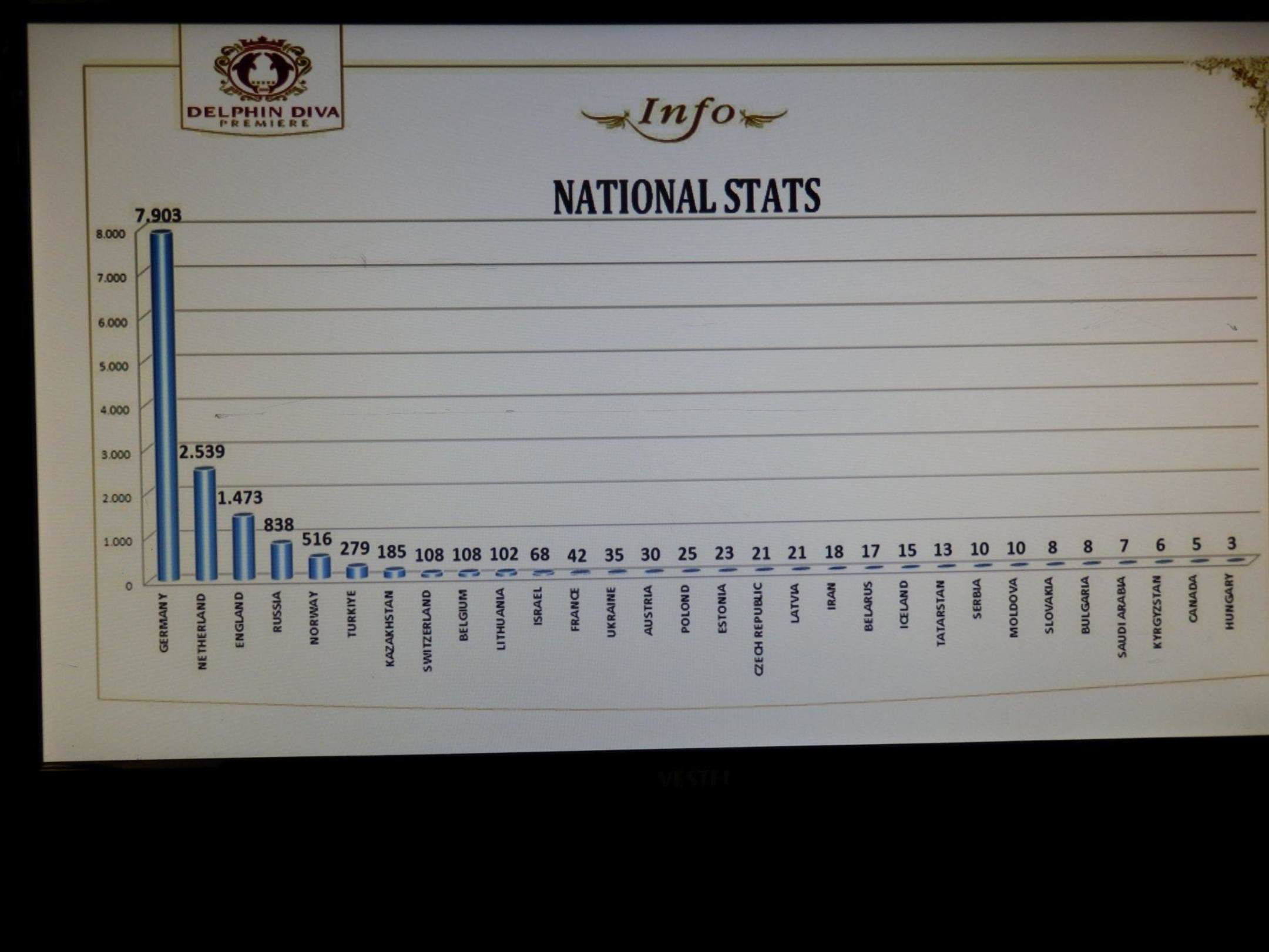 Auf dem Bild ist die Verteilung der Nationalitäten zu sehen, wie zu erkennen ist, sind die Gäste zu einem großen Teil aus Deutschland - ob dies ein Vor- oder Nachteil ist muß jeder für sich selbst entscheiden