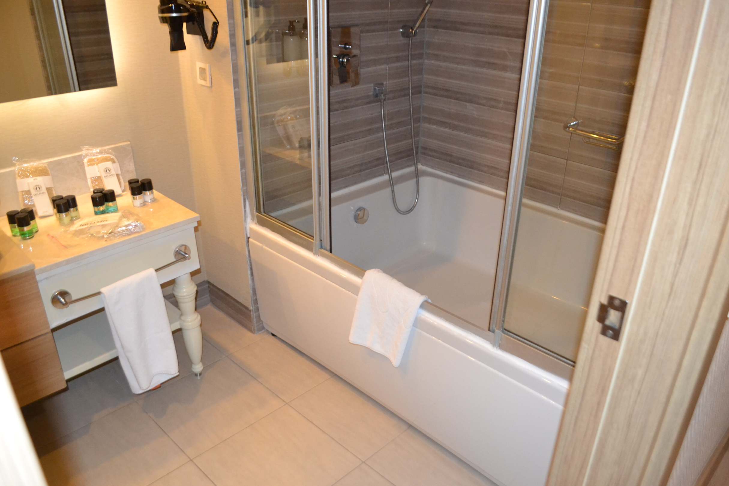 Zimmer mit Badewanne, gab es aber auch mit flacher Dusche.