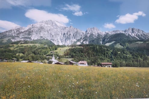 Blick auf das Steinerne Meer in Österreich von unserem Hotelfenster aus.