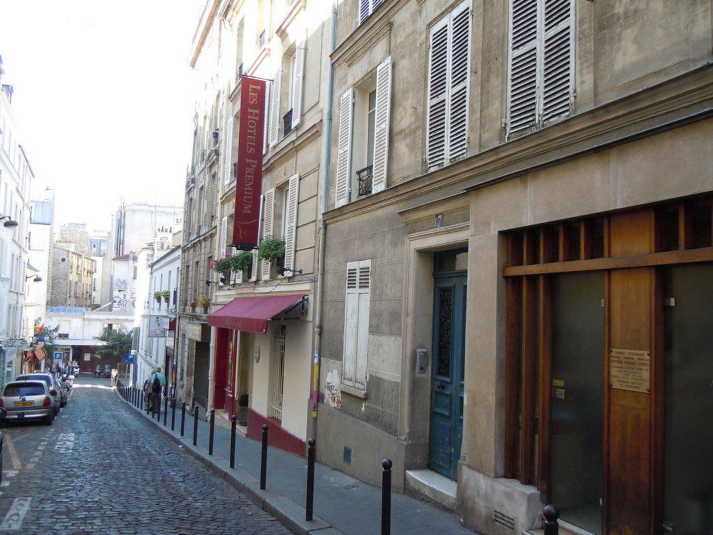 Außenansicht des Hotels und rue Tholozé