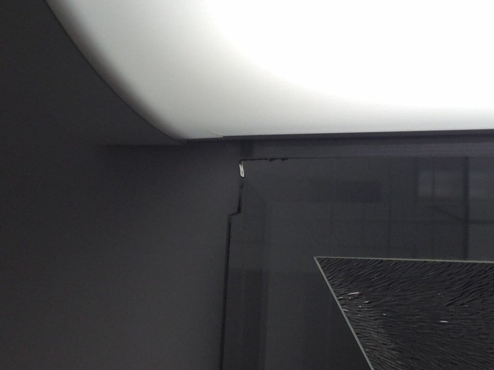 Spiegelecke im Bad abgebrochenDer Badspiegel ist schadhaft. Die linke obere Ecke ist abgebrochen und ist sehr scharfkantig.