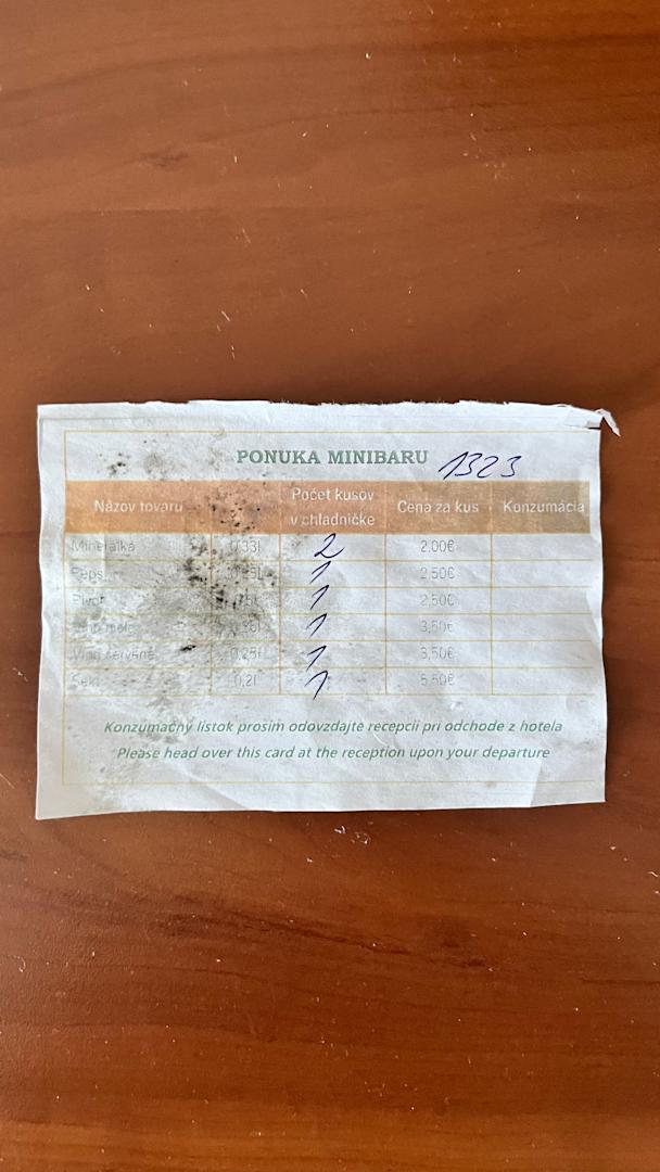Zettel in Minibar verschimmelt.