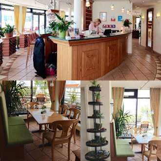 Rezeption und "Lobby"Rezeption im 7. OG (Fahrstuhl 1), der Eingang unten ist schnell zu übersehen