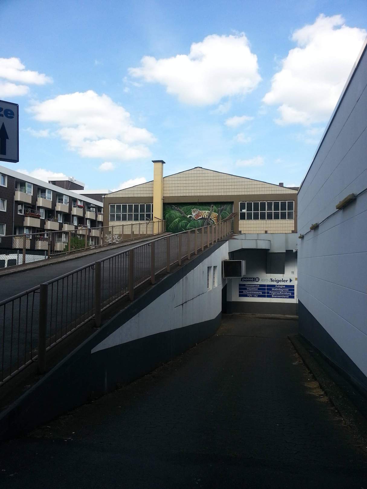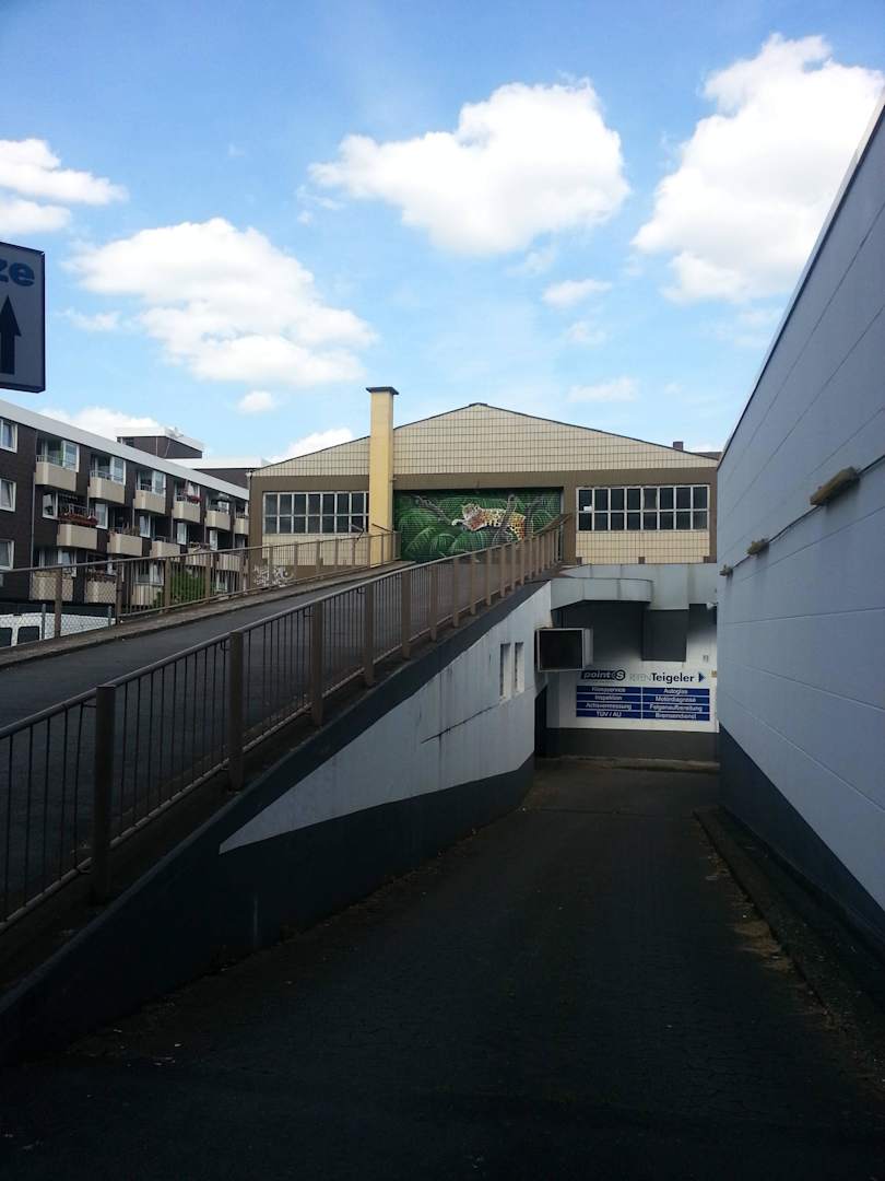 Parkmöglichkeit im Hinterhof diagonal vom Hotel. In der Lagerhalle oben.