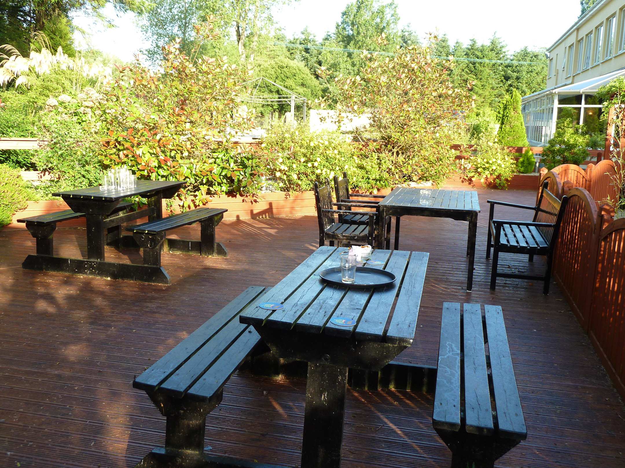Tische hinter dem Hotel