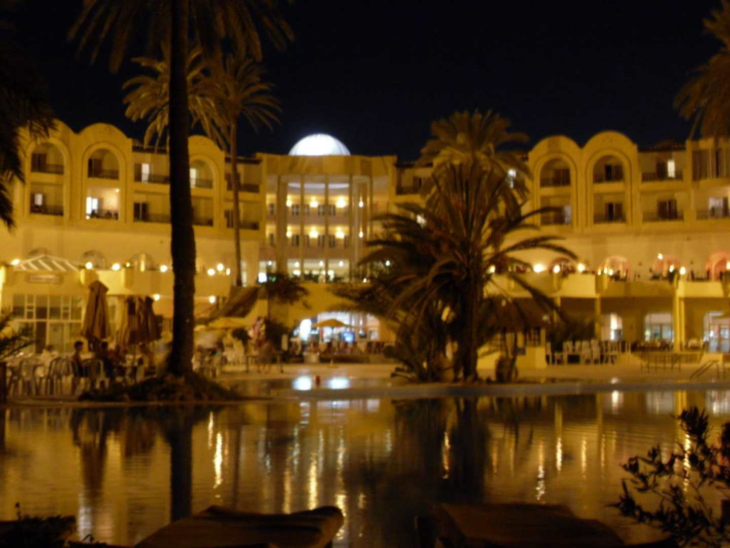 Am Abend, vom Pool aus fotografiert, unser Hotel