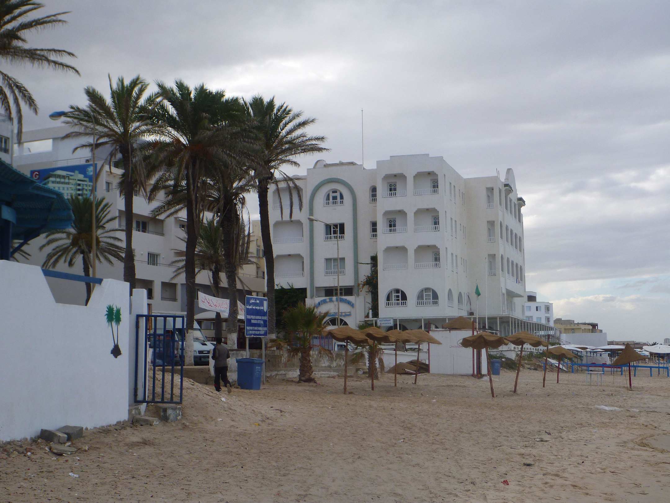 Blick vom Strand auf das Hotel