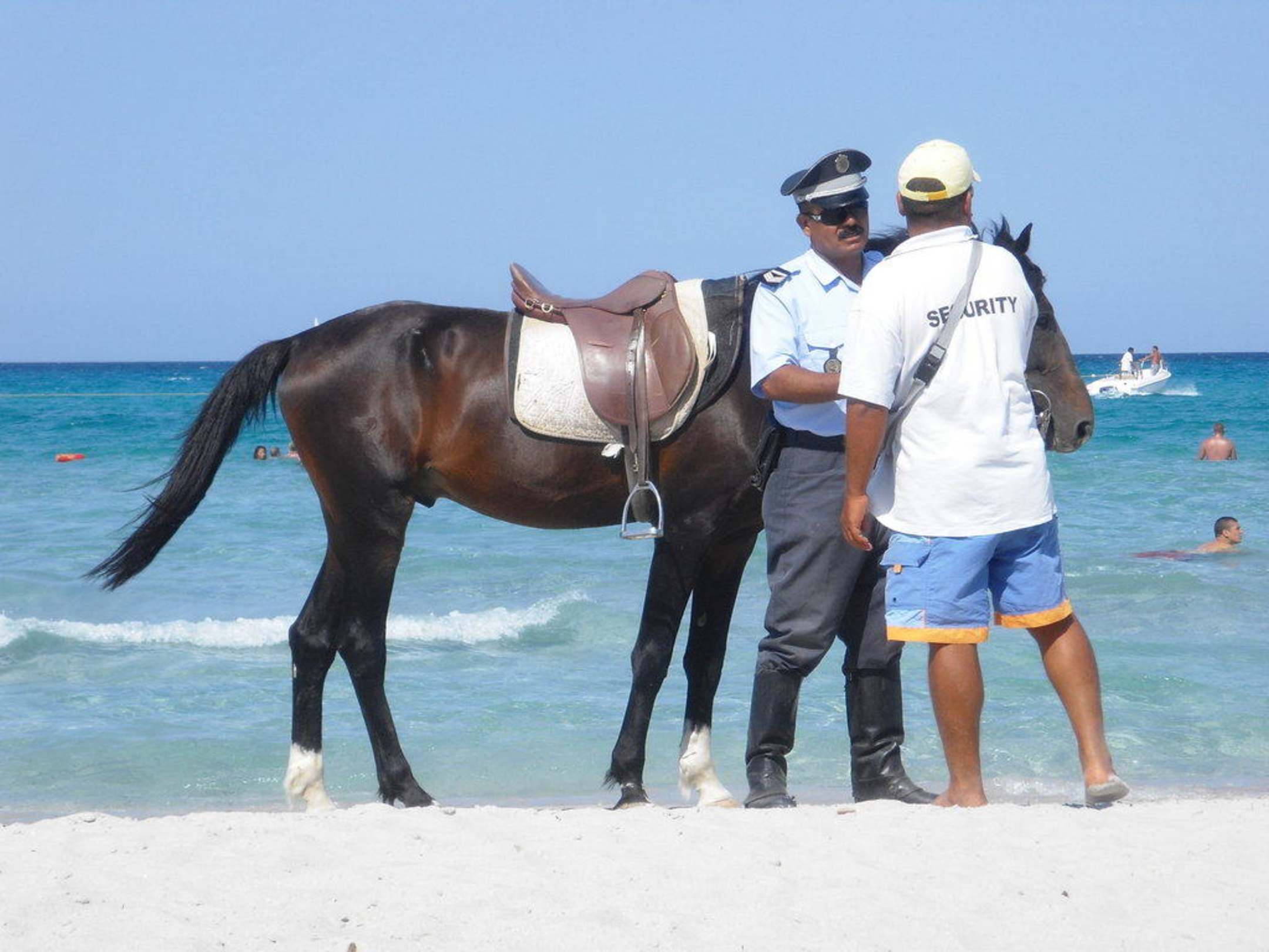 Polizei auf Pferden und Security täglich