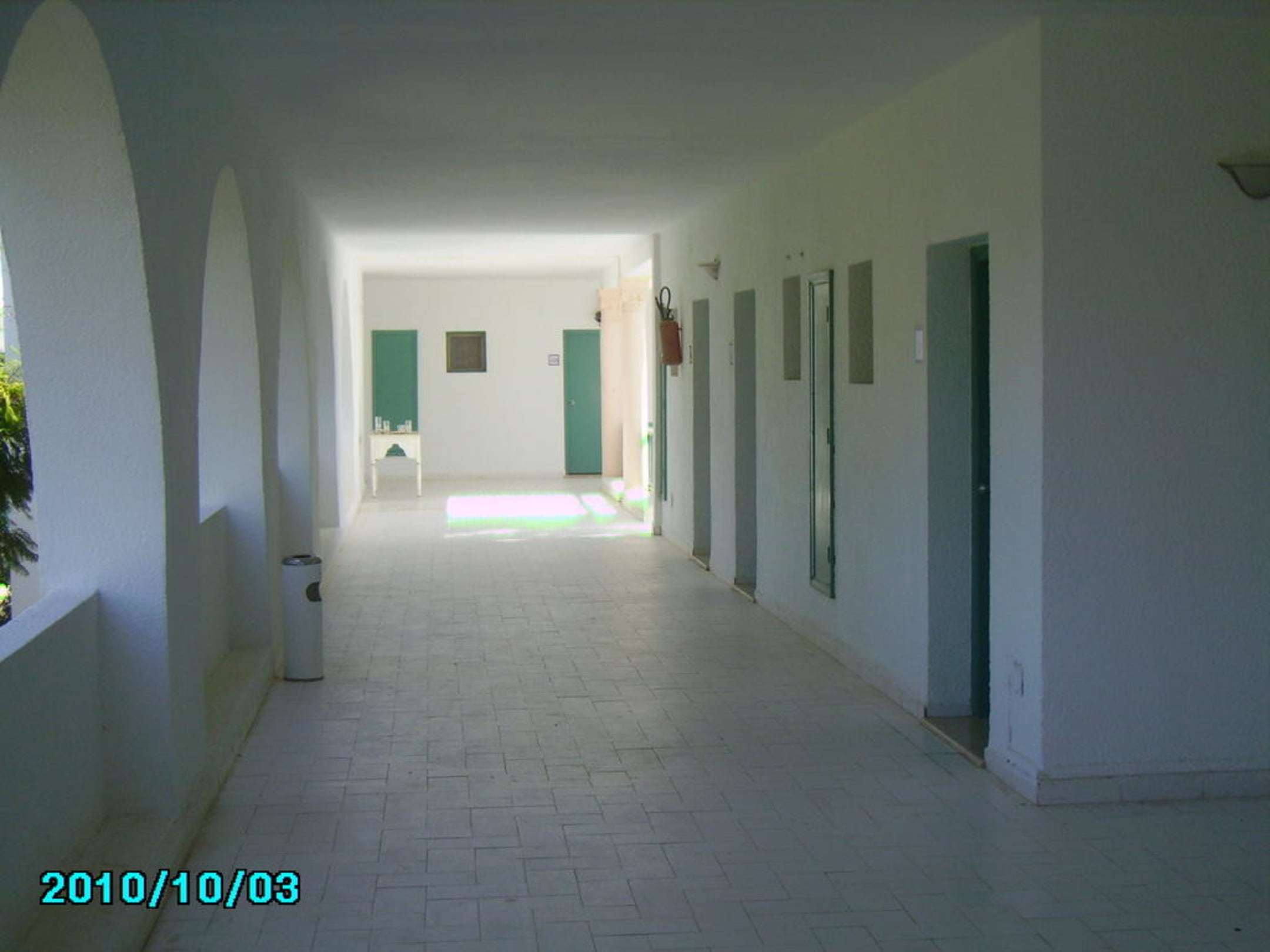 Das ist der Gang vom Zimmer in Richtung Hauptgebäude, nur über ein paar Stufen entfernt.