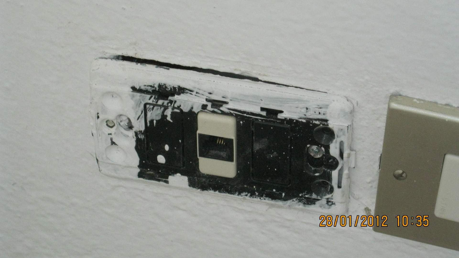 Steckdose und LAN mit fehlender Abdeckung