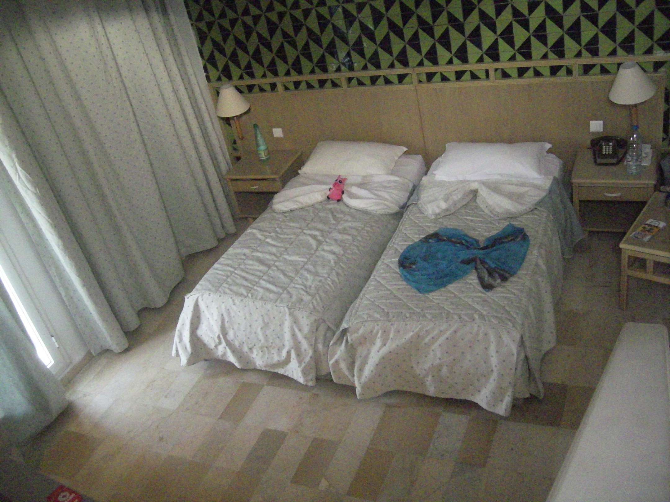 Unser Bungalow mit den schön dekorierten Betten