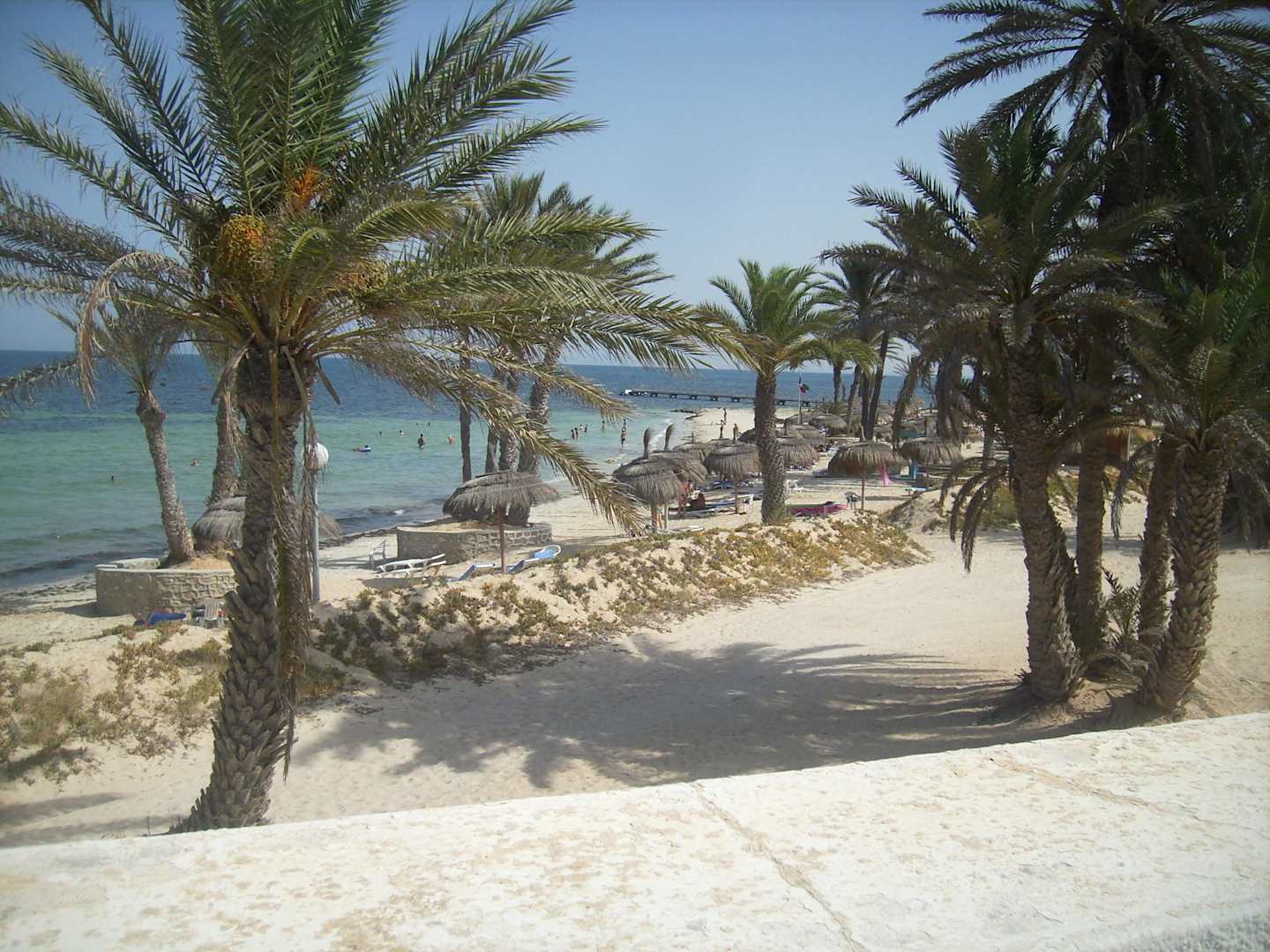 Blick von Bungalow-Terrasse zum Strand
