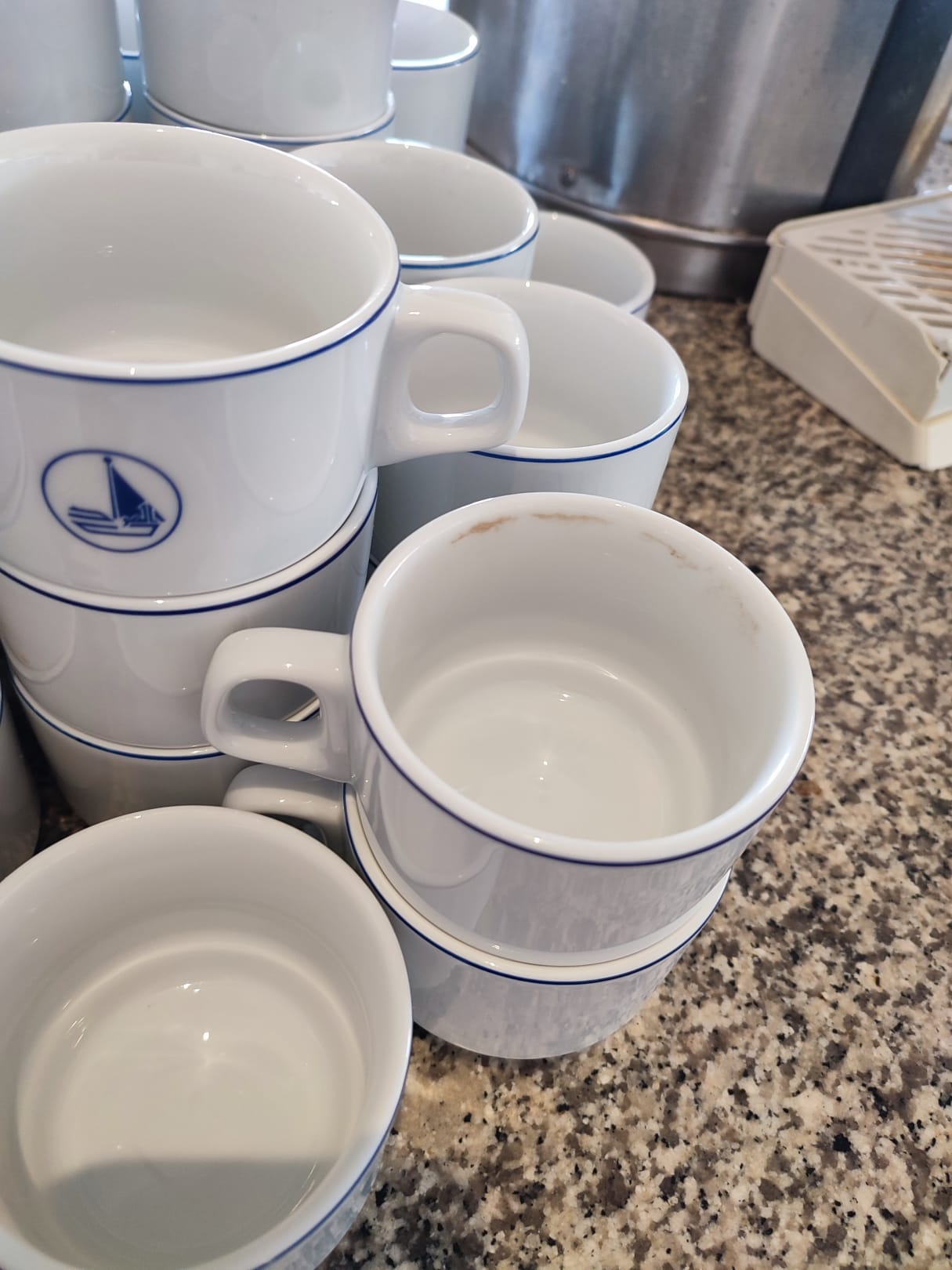 Gastrodreckige Tassen (auch viele Gläser waren dreckig.. man musste manchmal 4-5 Gläser oder Tassen in die Hand nehmen, bis man ein sauberes hatte)