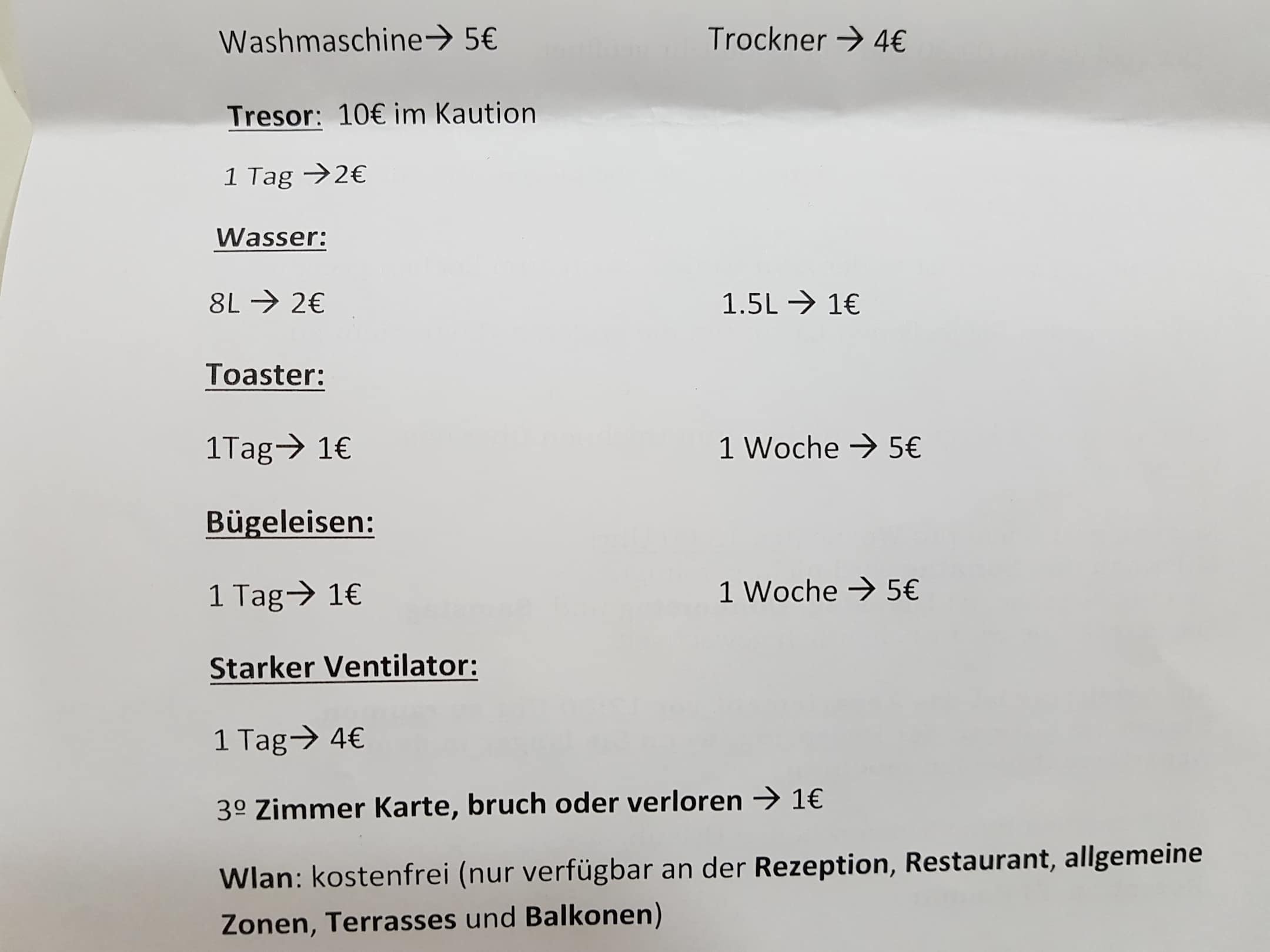 Gebühren im Hotel