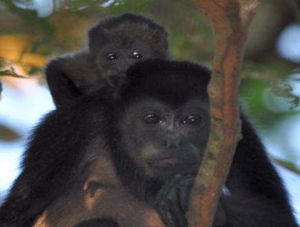 In the trees over the garden Mama Triste and Baby Hotel El Sueno Tropical Playa Carrillo