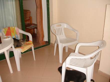 Nach ein paar Tagen hatte es sich bei den Hotelkatzen rumgesprochen, dass wir Katzenfreunde sind und hier versucht Hotelkatze 1 gerade Hotelkatze 3 aus ihrem Revier zu vertreiben.