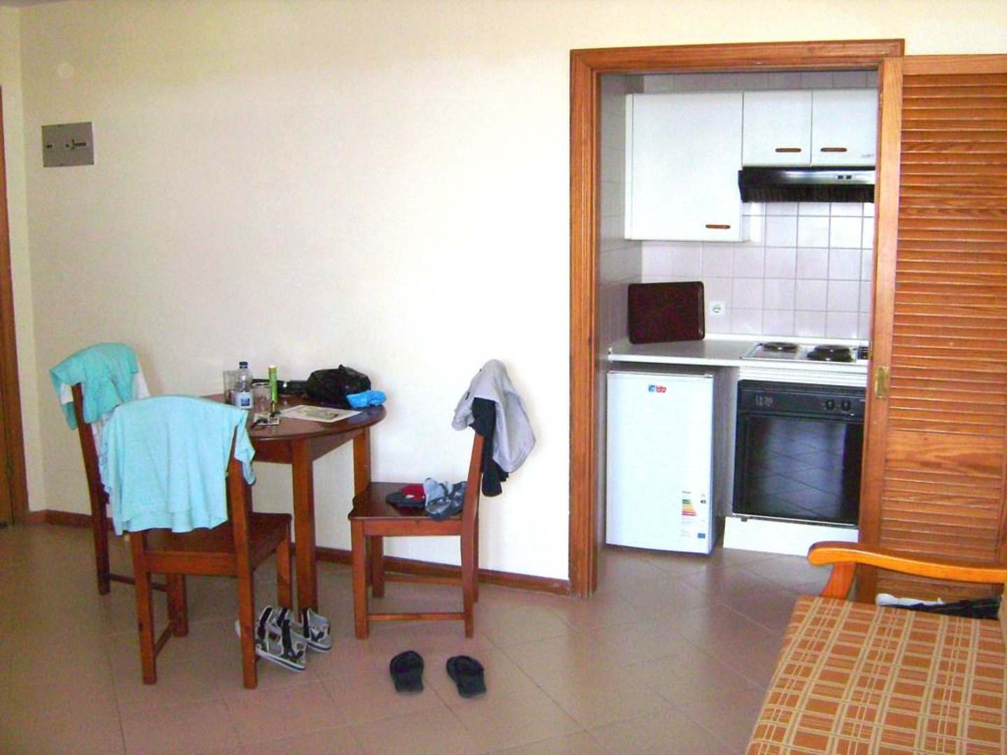 Teilbereich des Wohnzimmers mit integrierter Küche.