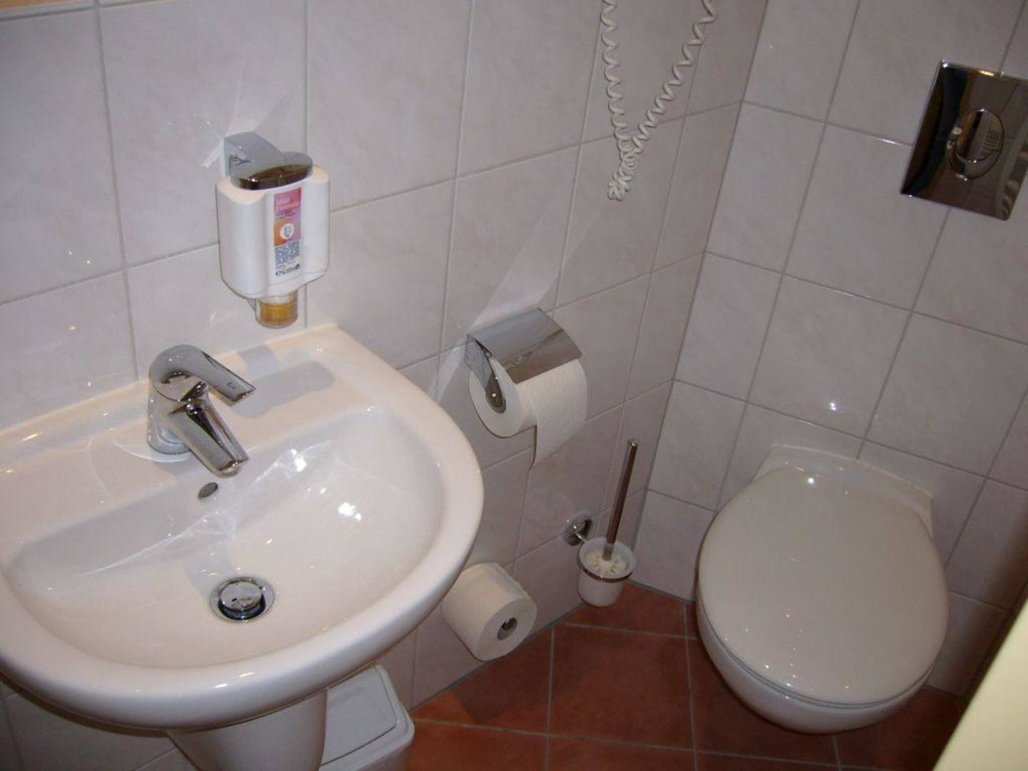 Blick ins kleine Badezimmer im Hotel Elezar Novum.