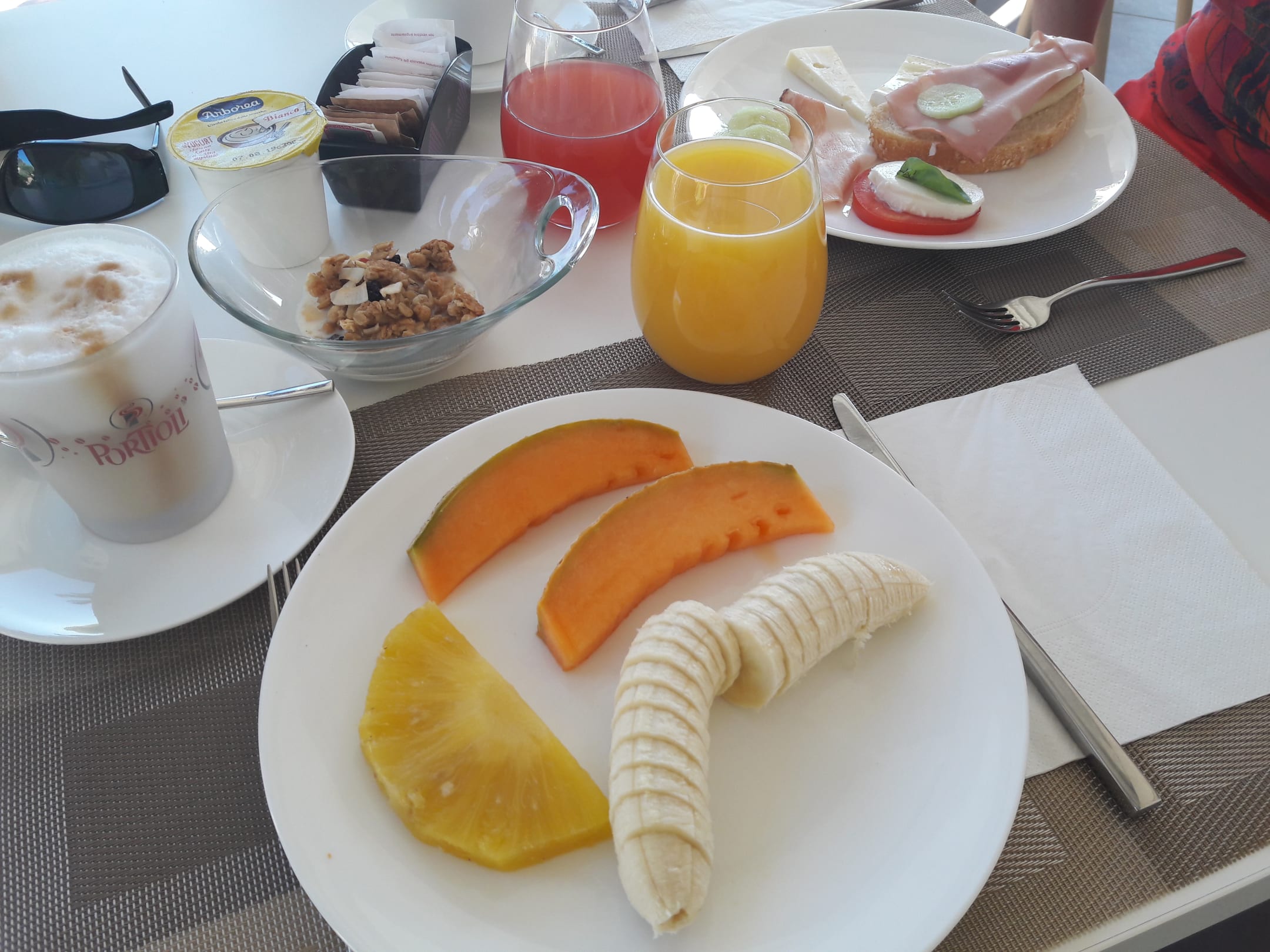 Gastroumfangreiches, hochwertiges Frühstücksangebot mit sehr gutem Kaffee aus der Espressomaschine. Frisches Obst und Gebäck.