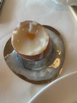 Fast rohe Eier beim Frühstück