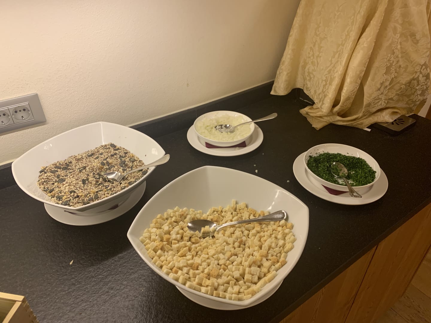 Unschön abgedeckte Küchengeräte neben den Speisen