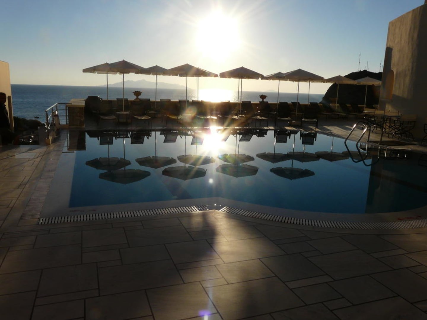 Pool mit Meerblick am Morgen