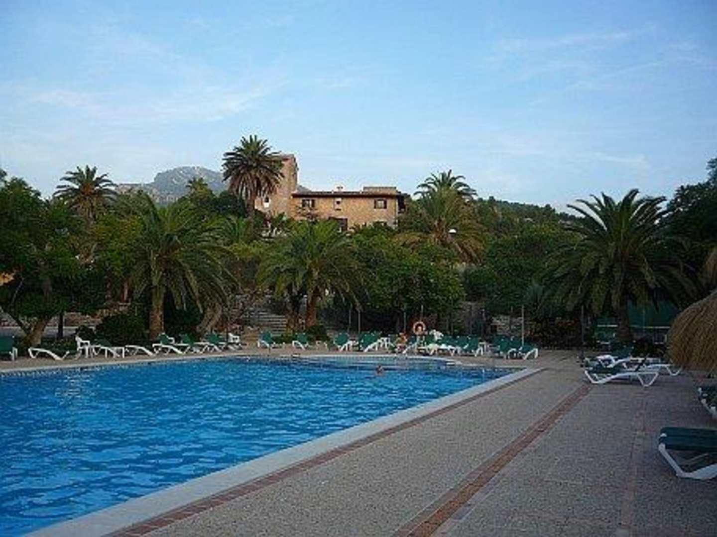 Blick zum Hotel über den Pool