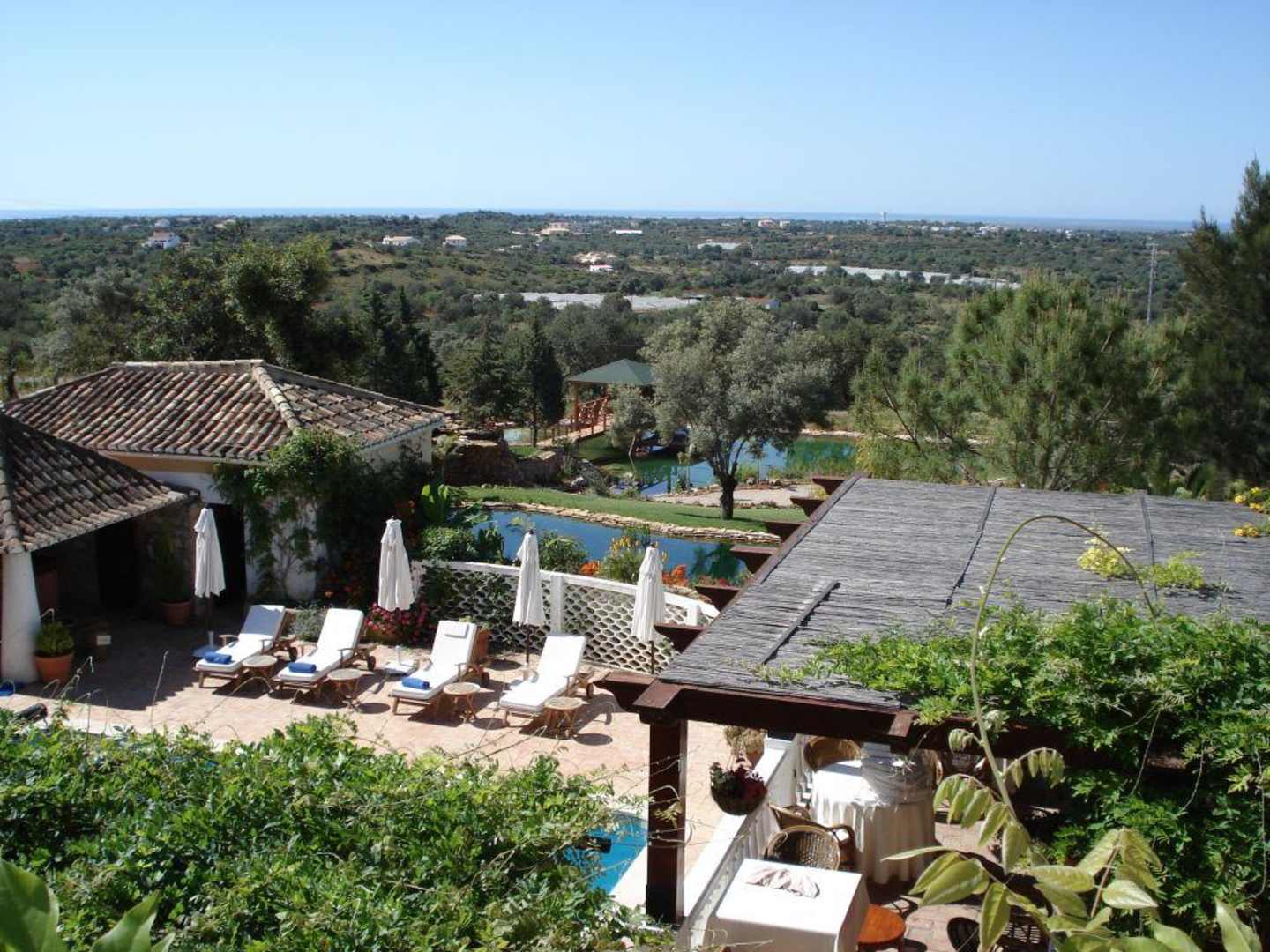 Blick aus dem ZimmerVon der Terasse unseres Zimmers hatte man diesen schönen Blick über Teile der Hotel-Anlage und bis zur Küste.