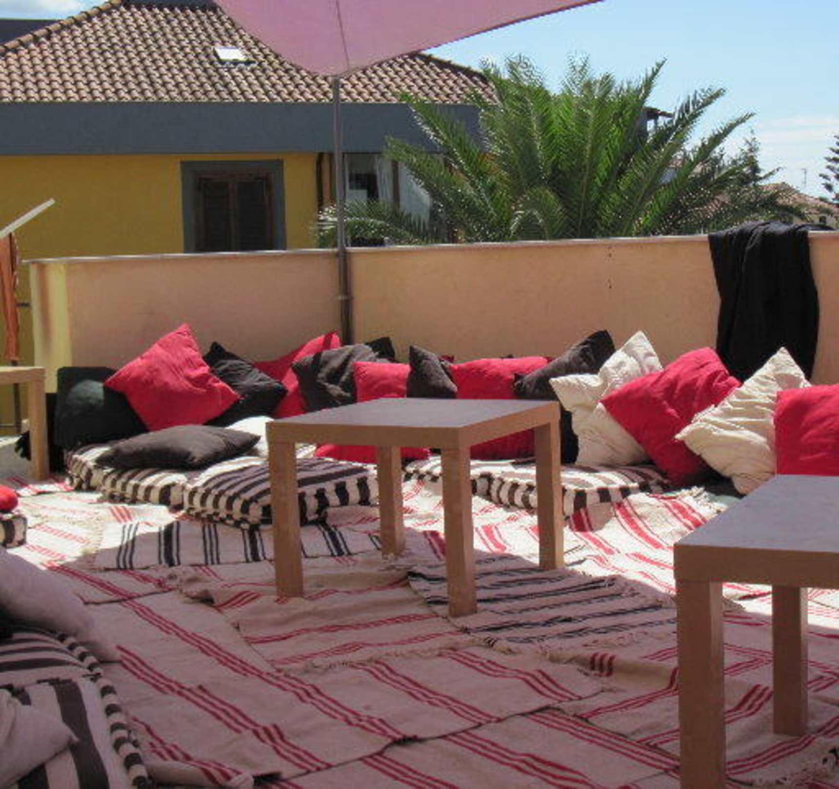 Auf der Terrasse im 1. Stock ist ein kuschelig einladendes Relax Corner eingerichtet, mit weitreichendem Blick über Casal Velino bis hin zum Meer